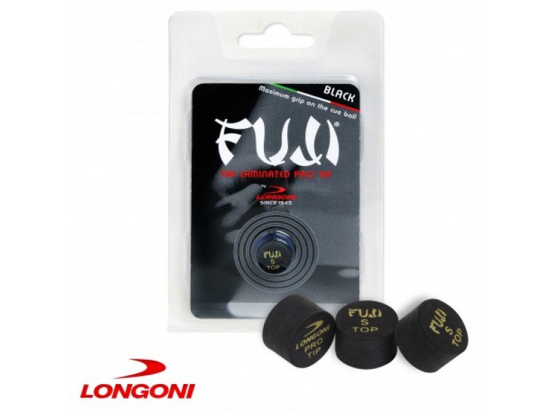 Longoni Fuji Black отличает особая технологичная обработка каждого слоя. Благодаря такой обработке, как и подразумевает название, наклейка приобретает черный цвет. Аналогично наклейкам Fuji Regular, продукты серии Black изготавливаются из десяти слоев специально обработанной свиной кожи. Наклейки доступны в индивидуальной упаковке, в двух диаметрах (13 или 14 мм) и трех градациях жесткости: Soft, Medium и Hard. Мягкая наклейка обычно дает более полное ощущение удара, но быстрее теряет форму.