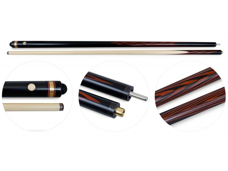 Кий изготовлен из граба — самой твердой и плотной древесины, добываемой в России с запилами из падука. «Белый» граб шафта — это вид дерева кавказский. Черный граб турняка — это восточный вид. Он имеет очень слабо выраженную фактуру, поэтому после пропитки получается плотный и ровный черный цвет. Как у эбенового дерева. А запилы из падука благородного красно-коричневого цвета прекрасно смотрятся в комбинации с черным грабом.