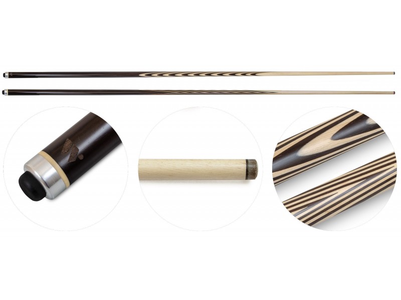 У этого кия запил классический, он же «Венский» и «Ласточкин хвост». Всего в склейке использовано 20 запилов. Считается, что чем их больше, тем стабильней изделие. Впрочем, каждый игрок в итоге подбирает параметры кия для себя вне зависимости от мнения общественности. Решающим фактором является индивидуальный стиль.