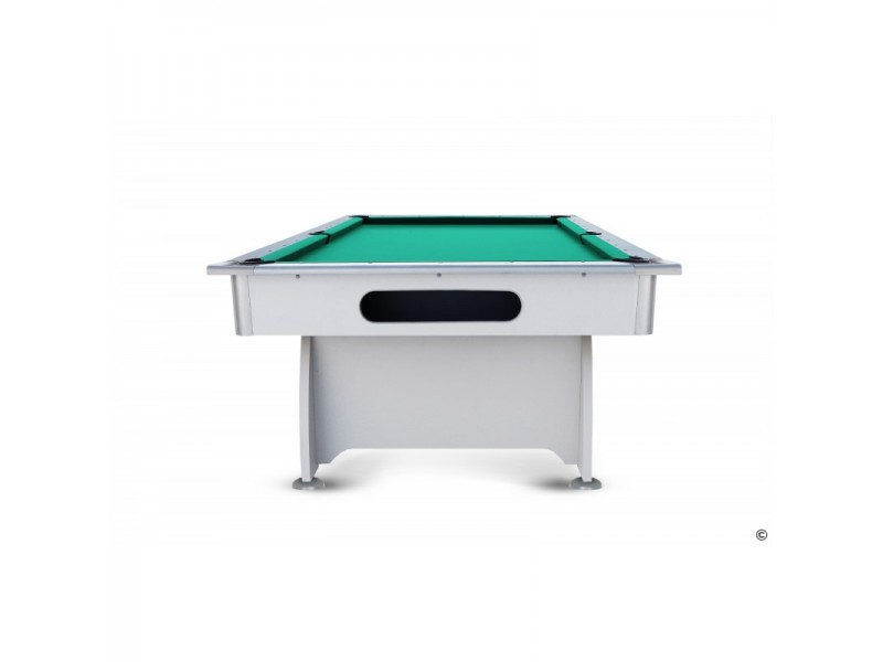 Конструкция стола выполнена из МДФ, ЛДСП, оснащена основательным лафетом, имеет повышенную статичность и жесткость. Модель имеет систему ската шаров. В основе игрового поля лежит ЛДСП 16 мм. Стол поставляется с полностью собранной верхней частью.