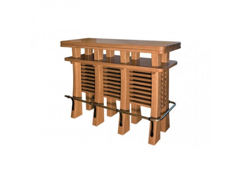 Стильная барная стойка выглядит как настоящий предмет искусства, выполняя при этом важные практические функции. Просторная столешница – идеальное место для размещения напитков и легких закусок, которые будут доступны для игроков и гостей во время партии. Нижняя полка позволяет аккуратно и эстетично разместить бутылки с напитками, а также некоторые барные аксессуары.